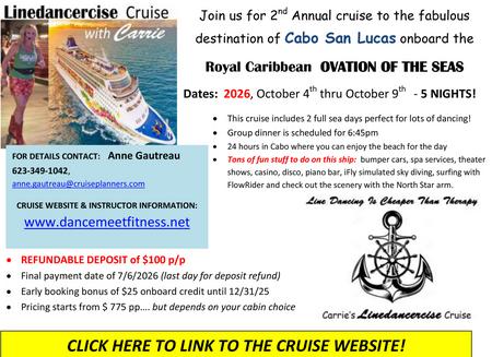 Thanks so much for visitng my website! I started teaching Group Fitness classes in 1990 when they were called "Aerobics" classes and folks were wearning leg warmers : ) I fell in love with dance fitness and continued to broaden my class formats from floor jazz-style aerobics to Step, Muscle, Cycle, Kickboxing, Aqua, and more. I'm probably best known for my Line Dancing classes I coined LINEDANCERCISE since they are fitness based. These low impact cardio classes incorporate all kinds of music and dance rhythms and are a ton of fun engaging the body and the brain!